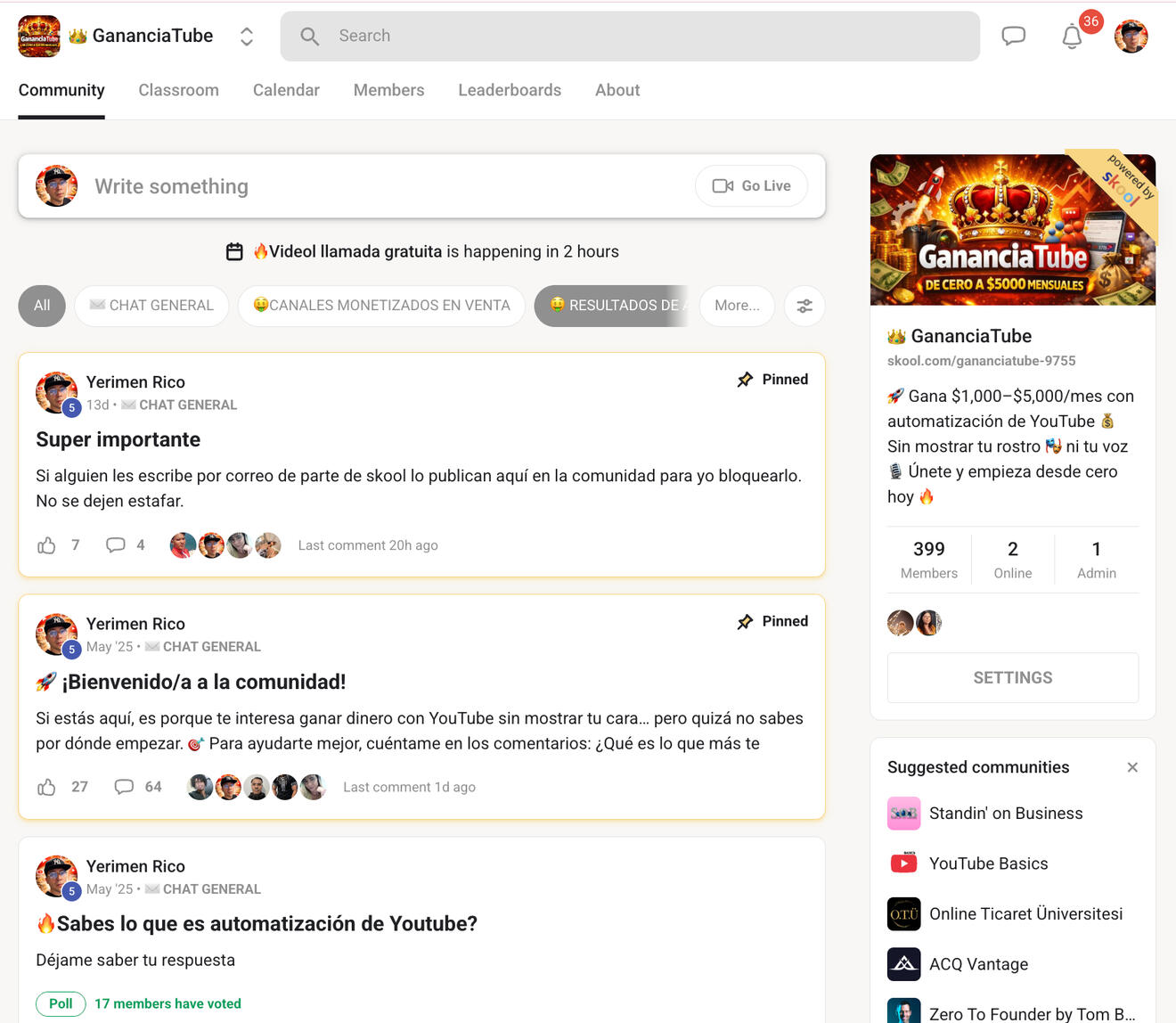 Llevo más de dos años viviendo exclusivamente de la automatización de YouTube. Durante este tiempo he logrado resultados increíbles, alcanzando meses de más de $25,000 en ingresos. No hablo desde la teoría, sino desde la experiencia real. Además, he construido una comunidad sólida con muchísimos alumnos y múltiples casos de éxito que hoy generan ingresos con este modelo.
